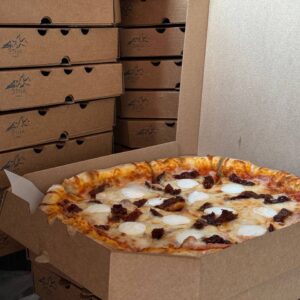 Томатная основа, ветчина, вяленые томаты, сыр моцарелла, мини-моцарелла.